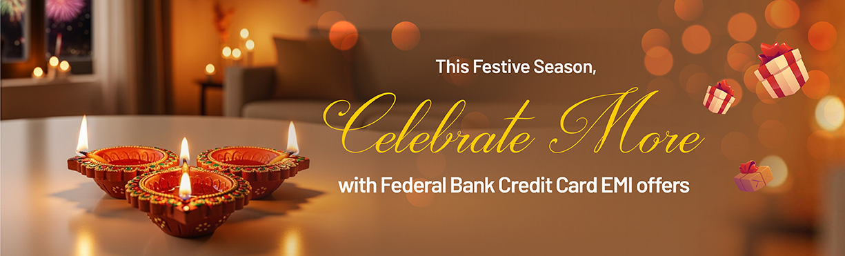 Light up your festive season with exclusive Diwali offers on your Federal Bank Credit and Debit Cards. Enjoy instant discounts, cashback, and special deals on shopping, dining, travel, and more across leading brands and partner stores. Whether you’re upgrading your home, gifting loved ones, or planning a festive getaway, your Federal Bank card adds extra sparkle to every spend. Celebrate smarter, save bigger, and make this Diwali truly rewarding with Federal Bank.