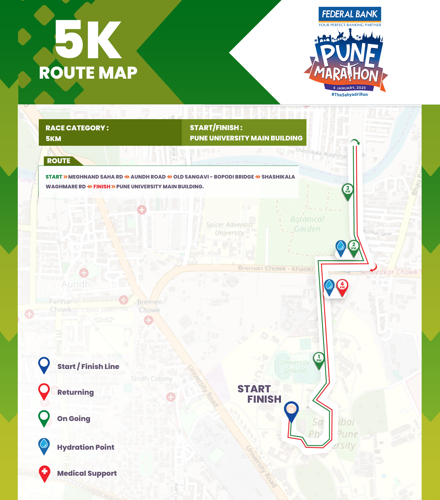 Start point: Savitribai Phule Pune University, Ganeshkhind, Pune